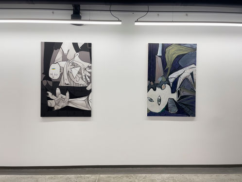 The exhibition/performance is inspired by Pablo Picasso's painting - Guernica. The work is divided into twelve equal parts, a copy of each part was made independently by twelve contemporary Georgian artists from the Guild of Artists.