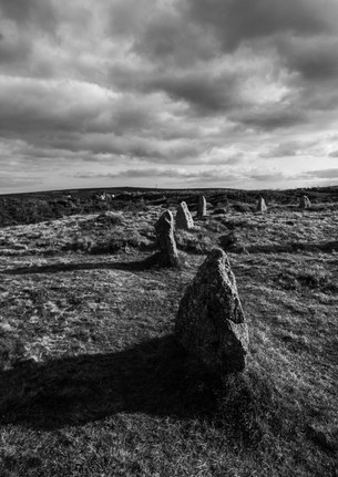 The ‘Dancers of a Circle from the Past’ series of photographic works is based upon two aspects of the Tregeseal East Stone Circle just outside of St Just, Cornwall, UK. The stone circle, comprising 19 granite standing stones, also goes by 'The Dancing Stones' or in the Cornish Language "Meyn an Dons" meaning "Stones of the Dance". Tregeseal dates back to either the Neolithic or early Bronze Age although an exact date is not known. Similarly, only little is known of the occupants who built the stone circle apart from being of a megalithic culture. The stones themselves are made of granite with quartz embedded within. Tregeseal is the only surviving stone circle out of three within the area that once stood along the east-west axis in the shadow of Carn Kenidjack to the north. The Stone Circle also aligns roughly with two barrows in the immediate area to the Northeast and the Isles of Scilly off the coast to the Southwest.